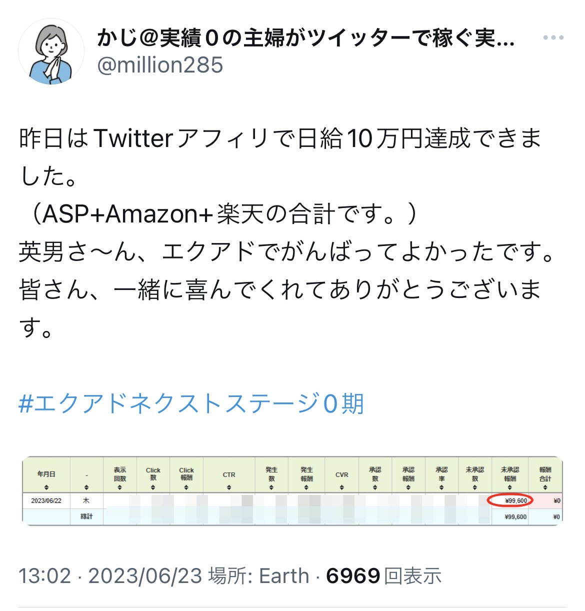 日給10万円を稼いだTwitter(X)アカウント1つ